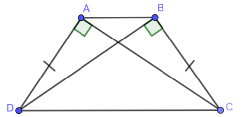 Vậy \(\Delta ADC = \Delta BCD\)(cạnh huyền – cạnh góc vuông). Từ đây suy ra AC = BD.