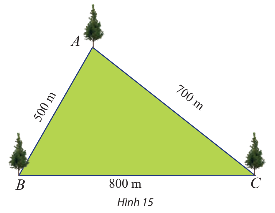 Một công viên có dạng hình tam giác với các kích thước như Hình 15. Tính số đo các góc của tam giác đó.