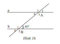 +) \(\widehat {{A_4}} = \widehat {{B_2}}\)( 2 góc so le trong), mà \(\widehat {{B_2}} = 40^\circ \) nên \(\widehat {{A_4}} = 40^\circ \)