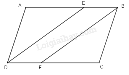 Cho hình bình hành \(ABCD\) (\(AB > BC\)). Tia phân giác của góc \(D\) cắt \(AB\) tại \(E\), tia phân giác của góc \(B\) cắt \(CD\) tại \(F\)