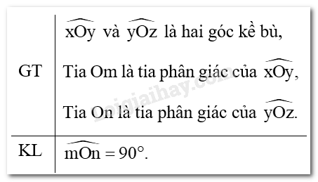 Vẽ hình, viết giả thiết và kết luận của định lí về đường phân giác của hai góc kề bù.