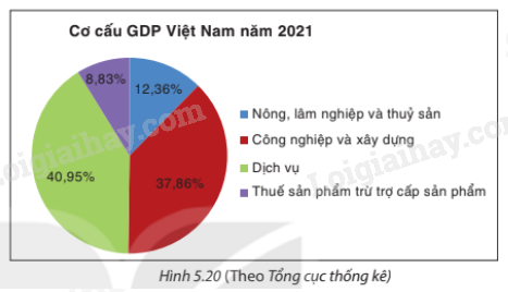 Biểu đồ (H.5.7) cho biết cơ cấu GDP của Việt Nam năm 2021.