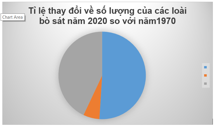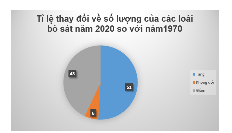 Bài 4. Năm 2020, tỉ lệ bò sát có số lượng giảm, không đổi, tăng so với năm 1970 tương ứng là 43%, 6%, 51%.