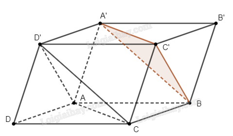 Nhận xét rằng tứ giác \(ACC’A’\) có \(AA’ = CC’\) và \(AA’\parallel CC’\) nên nó là hình bình hành. Suy ra \(A’C’\parallel AC\). Do \(AC \subset \left( {AD’C} \right)\) nên \(A’C’\parallel \left( {AD’C} \right)\).