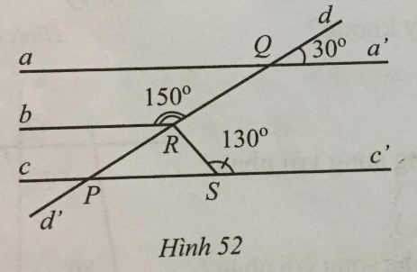 Tìm số đo góc QRS trong Hình 52, biết aa’ // cc’.
