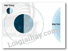 Trong hình bên, hãy vẽ hình để chỉ ra phần bề mặt của Mặt Trăng có thể nhìn thấy từ Trái Đất. Khi đó ta thấy hình dạng Mặt Trăng là gì?