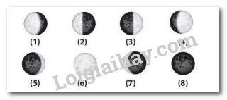 Sắp xếp các hình dạng nhìn thấy của Mặt Trăng ở hình bên dưới theo thức tự trong tháng âm lịch, bắt đầu từ pha không trăng.