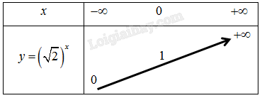 a) Vì hàm số \(y = {\left( {\sqrt 2 } \right)^x}\) có cơ số \(\sqrt 2  > 1\) nên ta có bảng biến thiên như sau: