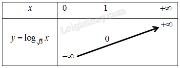 c) Vì hàm số \(y = {\log _{\sqrt 3 }}x\) có cơ số \[\sqrt 3  > 1\] nên ta có bảng biến thiên như sau: