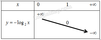d) Vì hàm số \(y =  – {\log _2}x\) có cơ số \(2 > 1\) nên ta có bảng biến thiên như sau: