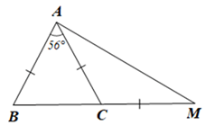 Cho tam giác ABC cân tại A có \(\widehat {BAC} = 56^\circ \). Trên tia đối của tia CB lấy điểm M sao cho AC = CM. Tính số đo mỗi góc của tam giác ABM.