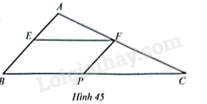 Cho tam giác \(ABC\). Lấy \(E,F,P\) lần lượt thuộc \(AB,AC,BC\) sao cho tứ giác \(BEFP\) là hình bình hành (Hình 45).