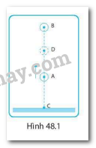 Từ điểm A một vật được ném lên theo phương thẳng đứng. Vật lên đến vị trí cao nhất B rồi rơi xuống đến điểm C trên mặt đất. Gọi D là điểm bất kì trên đoạn AB (Hình 48.1). Chọn phát biểu đúng.