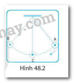 Kéo con lắc lên tới vị trí A rồi buông nhẹ (Hình 48.2). Bỏ qua ma sát của không khí. Tìm phát biểu sai.