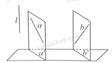 Giả sử hai đường thẳng \(a\) và \(b\) chéo nhau và hình chiếu song song của \(a\), \(b\) theo phương chiếu là đường thẳng bất kỳ \(l\) lần lượt là \(a’\), \(b’\) trên cùng một mặt phẳng. Ta nhận thấy rằng nếu mặt phẳng chứa hai đường thẳng \(a\) và \(a’\) (kí hiệu là \(\left( {a,a’} \right)\)) song song với mặt phẳng \(\left( {b,b’} \right)\) thì do \(a’\) và \(b’\) cùng nằm trên mặt phẳng chiếu, nên chúng song song với nhau.