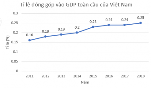 Bảng thống kê sau cho biết tỉ lệ đóng góp vào GDP toàn cầu của Việt Nam trong một số năm.