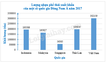 Bảng sau đây cho biết lượng nhựa phế thải xuất khẩu của một số quốc gia Đông Nam Á năm 2017.