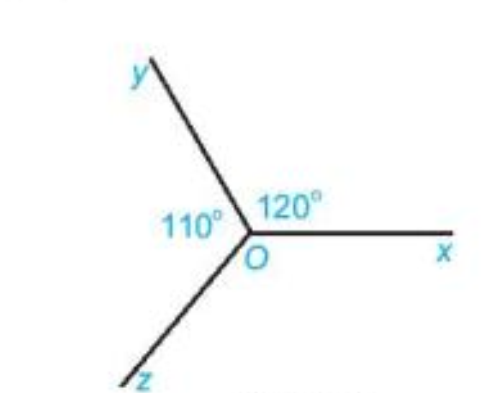 Bài 5 (3.36).Cho hình 3.21 biết \(\widehat {xOy} = {120^o},\widehat {yOz} = {110^o}\). Tính số đo góc zOx.