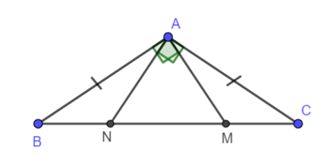 \(\Delta ABC\)cân tại A,\(\widehat A = {120^o};M,N \in BC;\widehat {MAB} = \widehat {NAC} = {90^o}\)