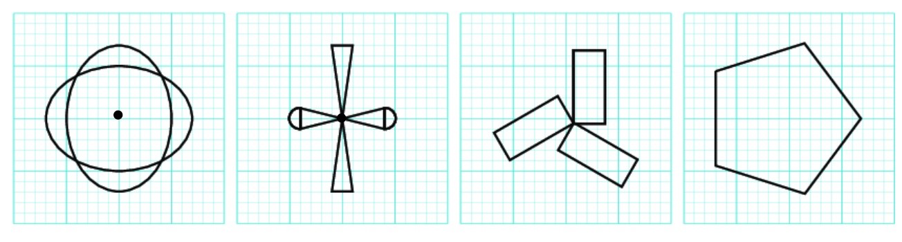 Bài 5 (5.7). Hình nào dưới đây có tâm đối xứng? Em hãy xác định tâm đối xứng (nếu có) của chúng.
