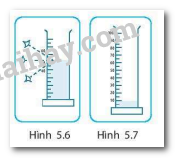 5.6. Hình 5.6 mô tả ba cách đọc và ghi kết quả khi đo thể tích của một chất lỏng bằng bình chia độ và cho ba kết quả: 40 cm3; 54 cm3; 60 cm3. Hãy cho biết kết quả nào đúng, tại sao?