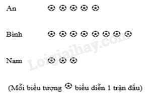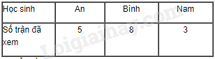 a) Bảng thống kê biểu diễn số trận đấu An, Bình, Nam đã xem: