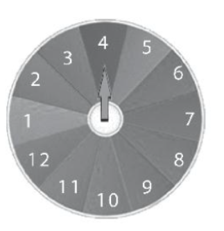 Trên tường có 1 đĩa hình tròn có cấu tạo đồng chất và cân đối. Mặt đĩa được chia thành 12 hình quạt bằng nhau và được đánh số từ 1 đến 12