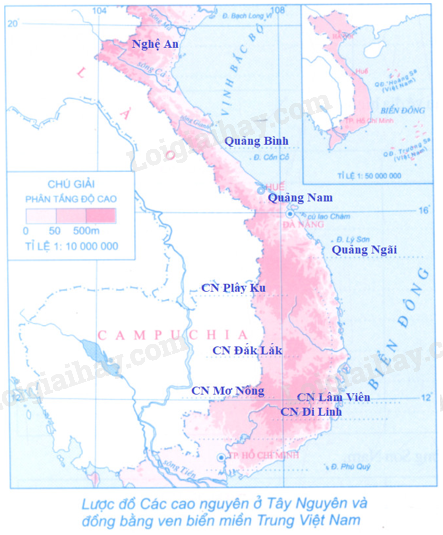 – Điền tên các cao nguyên chính ở Tây Nguyên vào chỗ chấm (…) trên lược đồ.