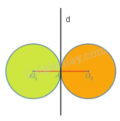 Qua A, kẻ đường thẳng d vuông góc với \({O_1}{O_2}.\)Khi đó đường thẳng d là đường trung trực của đoạn thẳng O1O2. Do đó, ta có phép đối xứng trục d biến O1 thành O2.