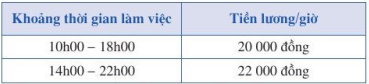 Tiền lương của nhân viên được tính theo giờ (bảng bên).