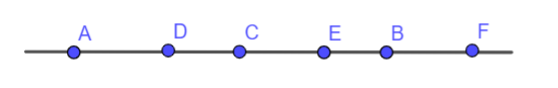 a) Những điểm nằm giữa hai điểm B và D là: C,E