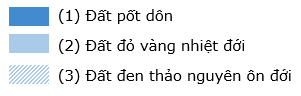 Làm chú giải cho lược đồ sau, bằng cách thể hiện kí hiệu và ghi tên các loại đất.