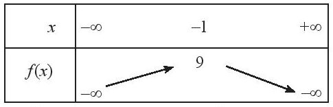 Hàm số có tập giá trị \(T = \left( { – \infty ; 9} \right]\)