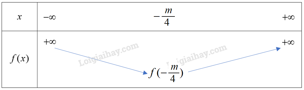 Hàm số giảm trên \(( – \infty ; – \frac{m}{4})\) và tăng trên \(( – \frac{m}{4}; + \infty )\)