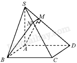 Vẽ \(AM \bot SD\) tại M. Do đó, \(AM \bot \left( {SCD} \right)\). Suy ra, \(\left( {BAM} \right) \bot \left( {SCD} \right)\) hay (ABM) là mặt phẳng qua AB và vuông góc với mặt phẳng (SCD).