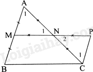 Tứ giác BMPC có: CP//BM, \(CP = BM\) nên tứ giác BMPC là hình bình hành. Do đó, MN//BC, \(MN = \frac{{BC}}{2}\)