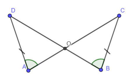 Vậy \(\Delta AOD = \Delta BOC\)(g – c – g ). Do đó AO = BO.
