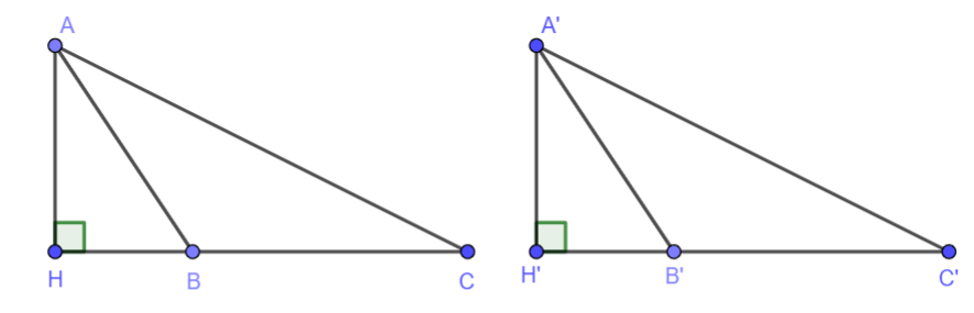 Hai tam giác AHB và A’H’B’ lần lượt vuông tại đỉnh H, H’ và có: