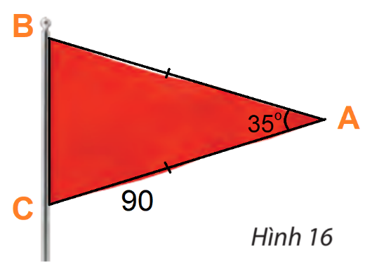 Tính diện tích một lá cờ hình tam giác cân có độ dài cạnh bên là 90 cm và góc ở đỉnh là 35