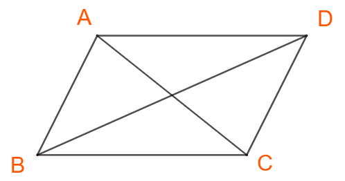 Bước 1. Tính góc AC, BD theo AB, BC, cosA dựa vào định lí cosin