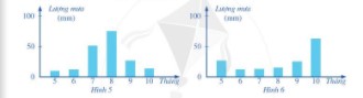 Từ tháng 5 đến tháng 10, ở Bắc bán cầu là mùa mưa còn ở Nam bán cầu là mùa khô. Quan sát hai biểu đồ ở Hình 5, Hình 6 và cho biết biểu đồ nào là biểu đồ lượng mưa của địa điểm ở Bắc bán cầu, của địa điểm ở Nam bán cầu .