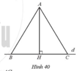 Từ một điểm A nằm ngoài đường thẳng d, vẽ đường vuông góc AH và các đường xiên AB, AC tùy ý (Hình 40).