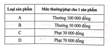 Một công ty cơ khí sản xuất đồ dùng dân dụng đã đề xuất chế độ thưởng phạt như bảng sau: