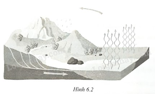 Hình 6.2 minh hoạ chu trình của nước trong tự nhiên. Theo em, có những quá trình chuyển thể nào của nước diễn ra trong chu trình này?