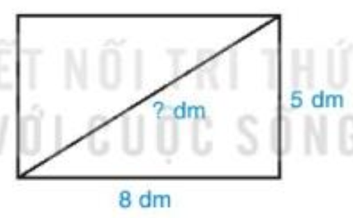 Bài 6 (2.11). Biết rằng bình phương độ dài đường chéo của một hình chữ nhật bằng tổng các bình phương độ dài hai cạnh của nó. Một hình chữ nhật có chiều dài là 8 dm và chiều rộng là 5 dm. Độ dài đường chéo hình chữ nhật đó bằng bao nhiêu đề xi mét (làm tròn đến hàng phần mười)?