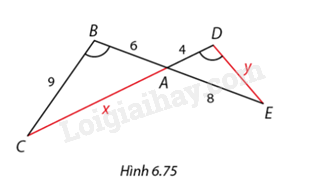 Trong Hình 6.75, \(A\)là giao điểm của \(BE\) và \(CD\).