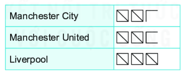 Bài 6 (9.16). Bảng sau cho biết số lượng các bạn lớp Khoa hâm mộ ba câu lạc bộ bóng đá giải Ngoại hạng Anh (mỗi gạch ứng với một bạn).