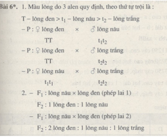-Từ tỉ lệ kiểu hình thu được ở F1 suy ra tính trạng trội. Suy ra màu lông do 3 alen quy định