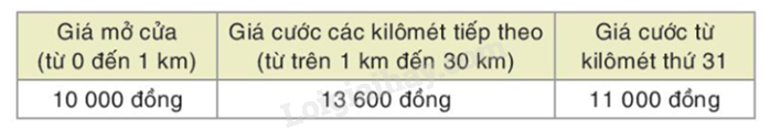 a) Dựa vào bảng số liệu hãy tính số tiền taxi phải trả khi di chuyển 35 km.