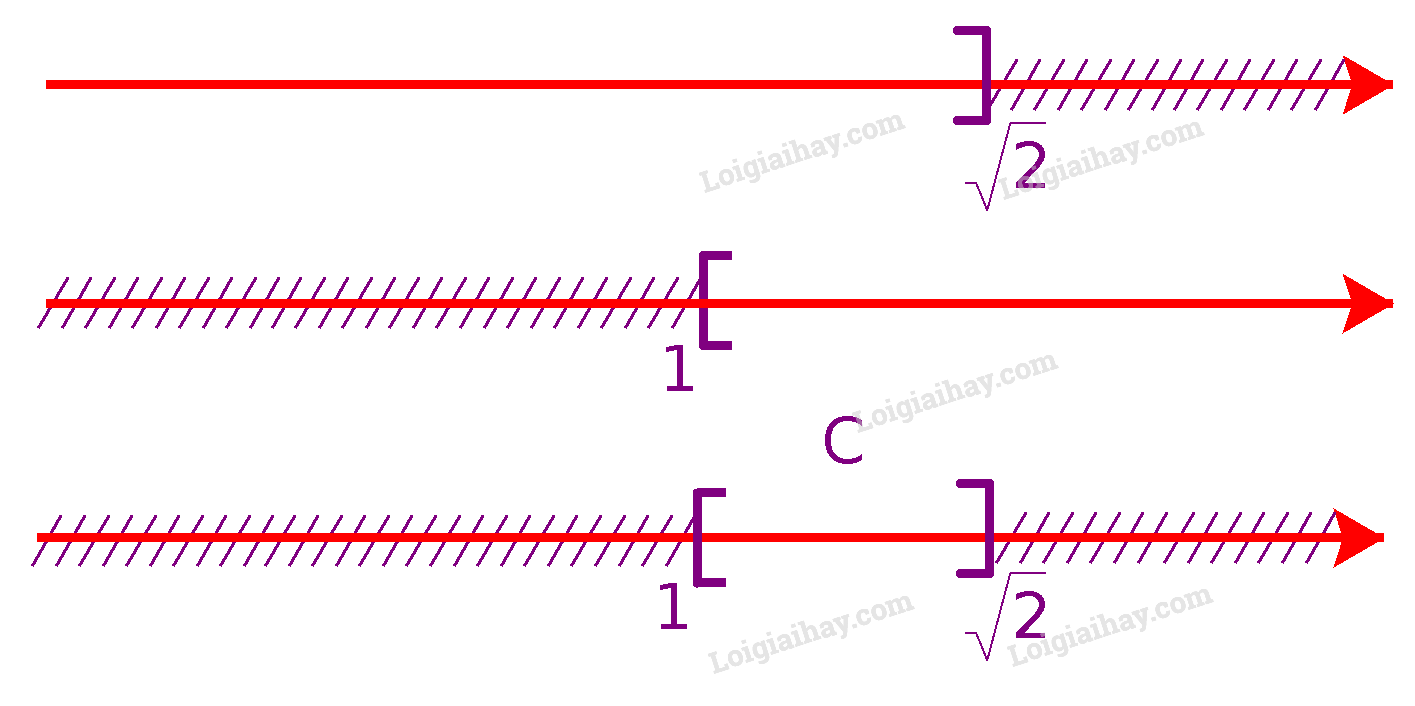 c) Để xác định tập hợp \(C = ( – \infty ;\sqrt 2 ] \cap [1; + \infty )\), ta vẽ sơ đồ sau đây:
